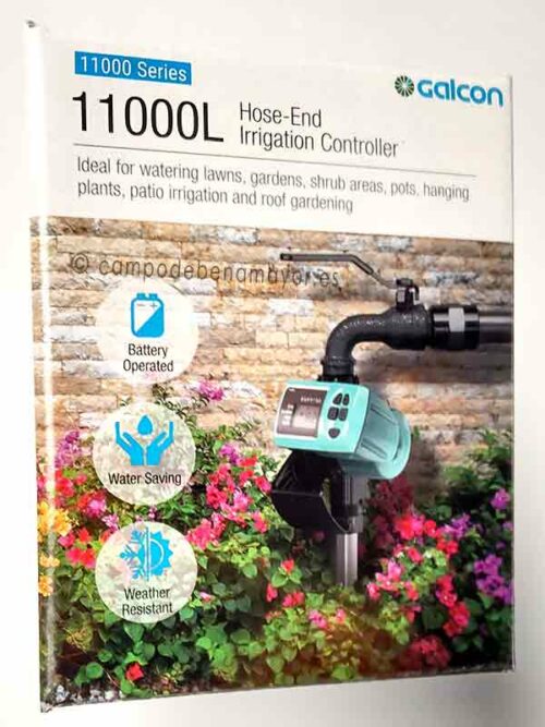 El programador de riego para adaptar al grifo Galcon 11000L es adecuado para pequeños jardines, patios y terrazas. Se instala con total facilidad a una toma de 3/4 y ofrece una programación sencilla muy fácil de configurar.